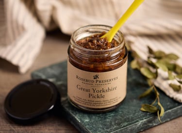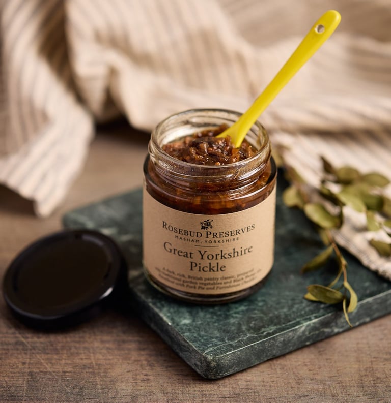 A dark, rich British pantry classic, this pickle is prepared with a satisfyingly crunchy mix of garden vegetables and a generous splash of Black Sheep Ale from another Yorkshire institution. It’s the perfect,robust accompaniment for savoury snacks.